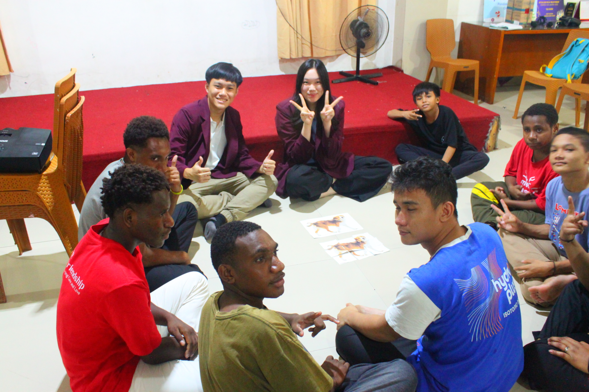 Day 2 was a lively and creative event, starting with a 5-minute “King and Queen” activity explanation session that included instructions on how to proceed with the paper crown-making activity. Participants then spent 55 minutes enthusiastically making crowns from folded and joined paper without using glue, drawing things they like, and decorating them with colored pencils, of course, with the help of their respective group organizers. The atmosphere became more colorful when participants were given colored pencils to decorate their crowns with things they liked, and the creativity of the participants was really visible from the variety of designs produced. After finishing making the crowns, the event continued with a 15-minute story-sharing session where participants would share the inspiration behind the crowns they made. The event continued with the “Freeze Dance” game, where participants danced to the beat of the music and had to immediately stop moving when the music stopped, creating tense yet entertaining moments when some of the eliminated participants had to perform the dance in front of their friends.