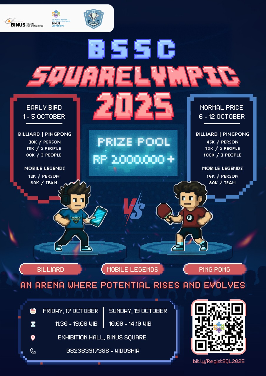 Ayo ikuti BSSC Squarelympic 2025, ajang seru untuk mengasah kemampuanmu di cabang olahraga dan E-sports yang kompetitif! ๐ฏ
