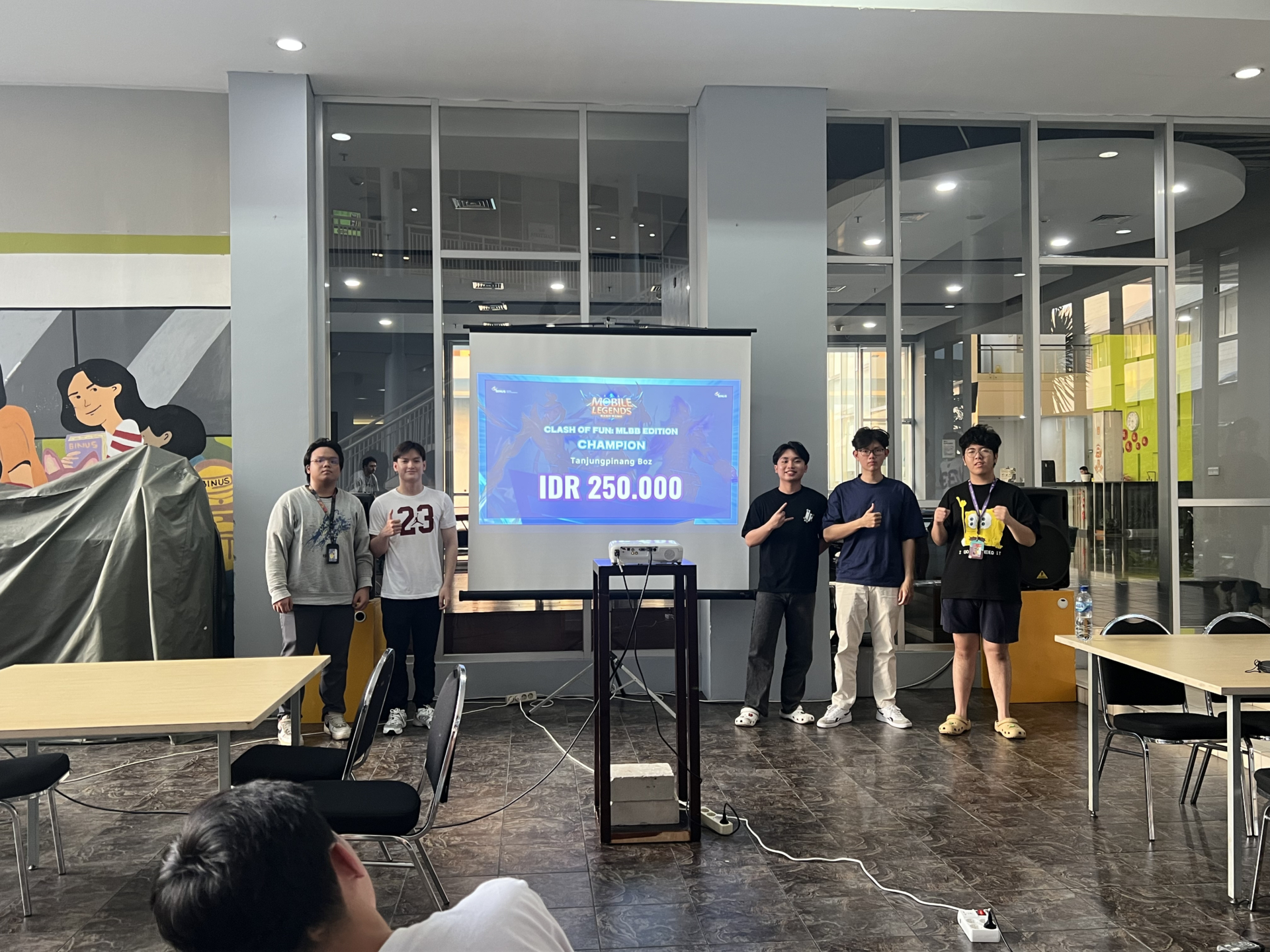 Pada hari Minggu, 9 Februari 2025 telah diselenggarakan event Clash of Fun: MLBB (Mobile Legends Bang Bang) Edition. Jumlah peserta dalam event ini terdiri atas 9 tim yang kemudian bertanding mulai dari tahap preliminary, semifinal, hingga grand final untuk memperebutkan gelar “Champion”. Event ini berlangsung mulai dari pukul 12.30 hingga 18.00 WIB di Exhibition Hall dan Games Area. Dengan total prize pool sebesar Rp 350.000,00, akhirnya event ini dimenangkan oleh tim “Tanjungpinang Boz” setelah mengalahkan tim “Kadal Gurun” dengan pertarungan yang sengit.