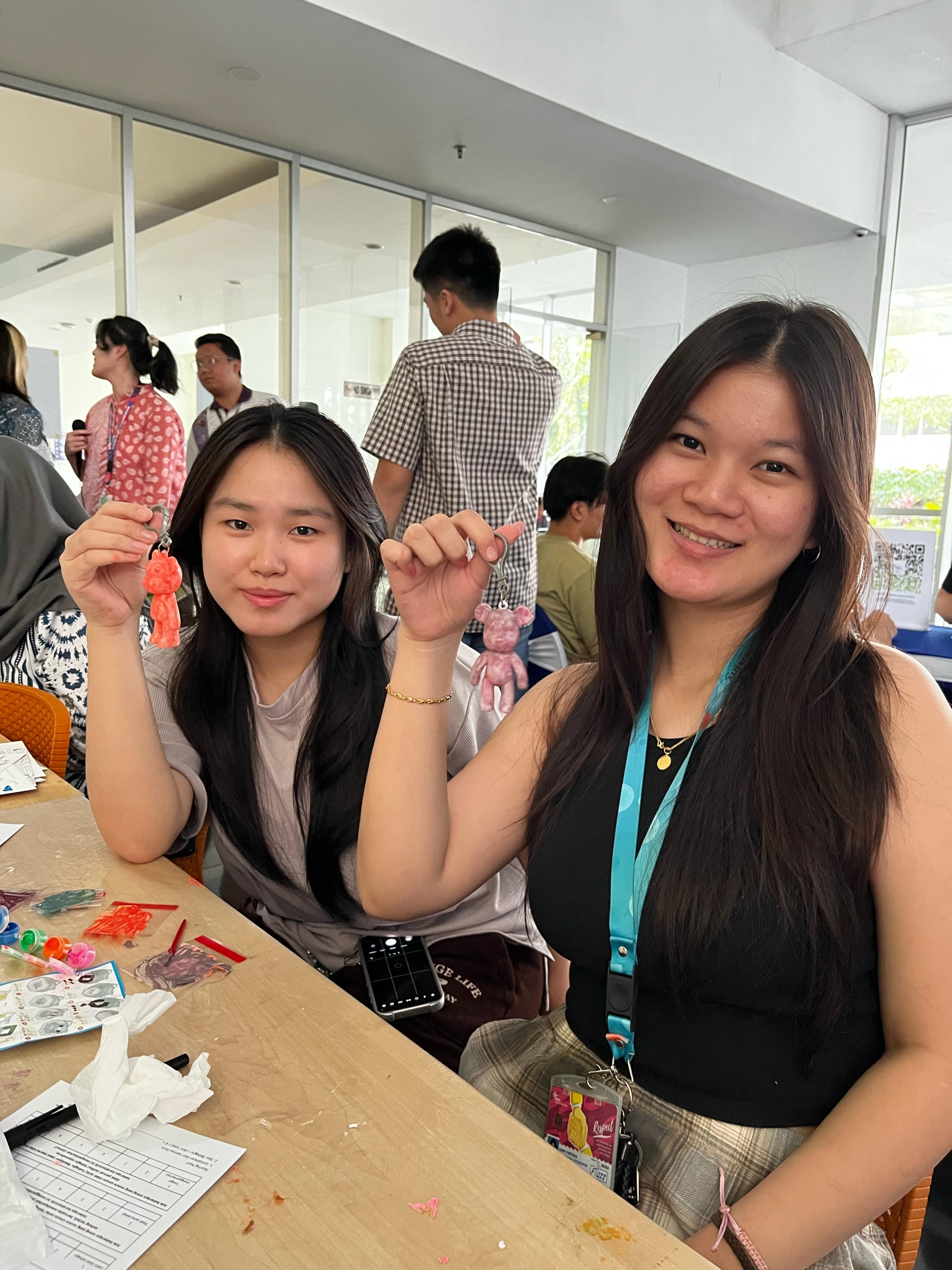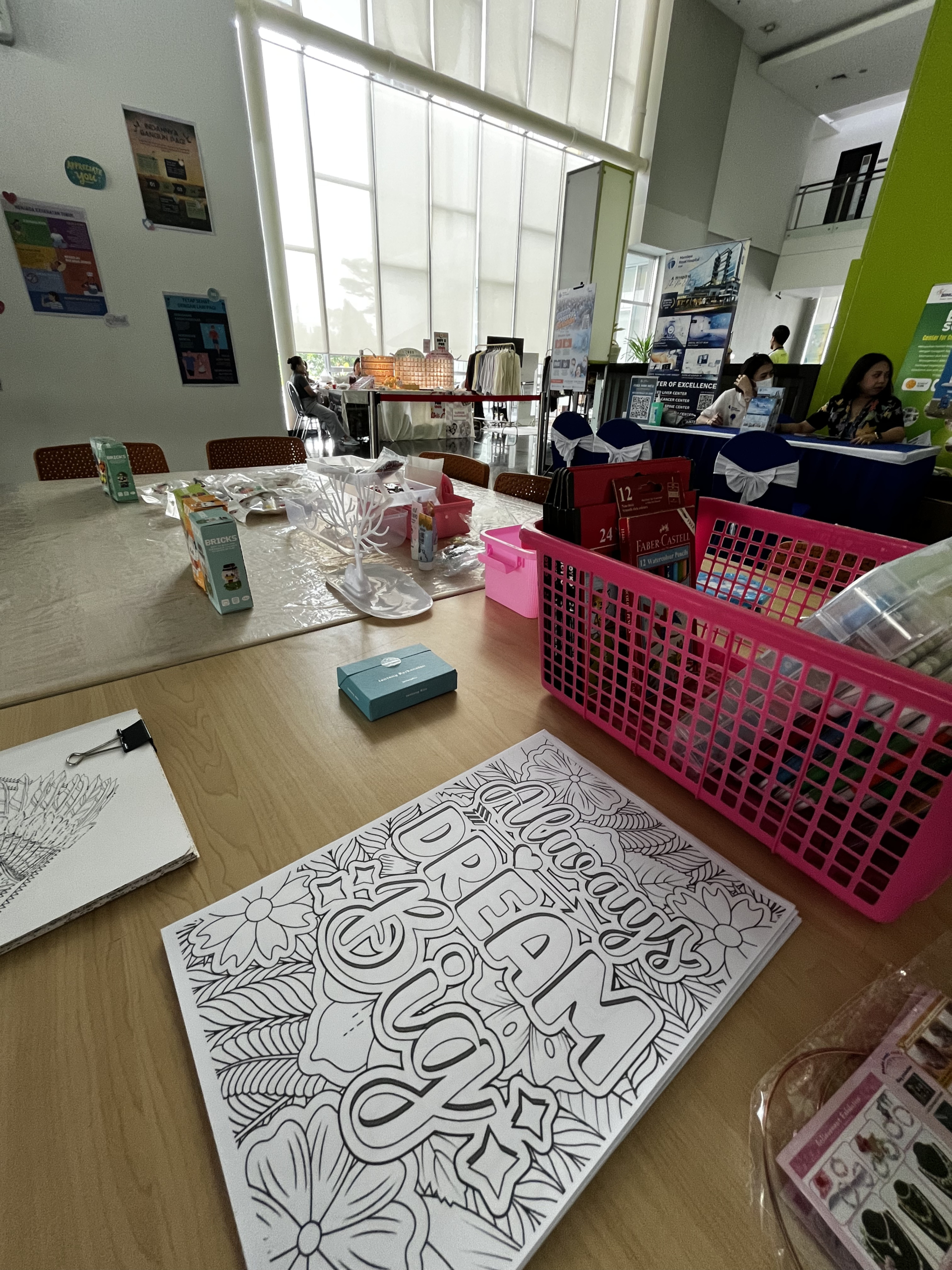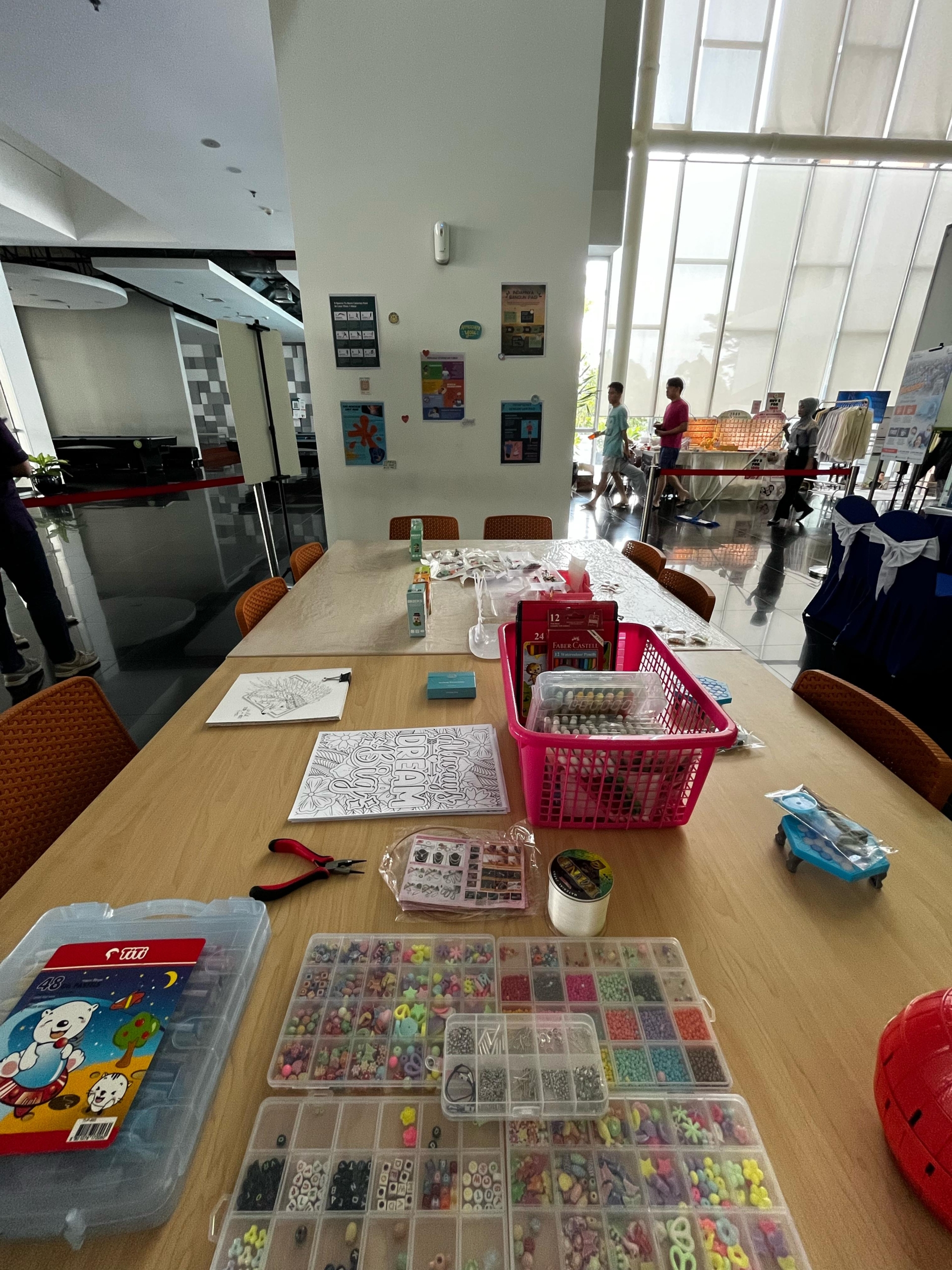 Sembari menunggu giliran, peserta bebas mengisi waktu di Stress Relief Spot yang telah disiapkan. Area ini menyediakan beragam aktivitas kreatif dan interaktif, seperti coloring (mewarnai gambar), menyusun bricks (balok susun), merakit guka set atau gelang persahabatan, hingga bermain permainan ringan, seperti Pirates Game, Penguin Trap, dan Kartu Pertemanan. Aktivitas ini bukan hanya menghilangkan stres, tetapi juga mempererat koneksi sosial antarboarder dengan suasana penuh kehangatan.