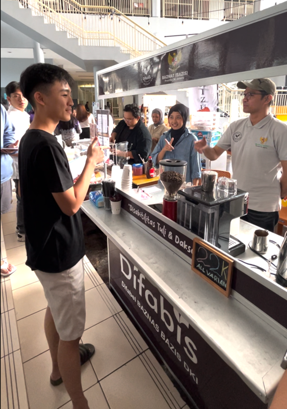 Setelah kegiatan utama, para boarder juga diajak untuk berkunjung ke booth Kopi Difabis yang berlokasi di Exhibition Hall. Di sini, mereka berkesempatan mempraktikkan langsung interaksi dengan teman Tuli, salah satunya dengan memesan kopi menggunakan bahasa isyarat. Pengalaman sederhana ini menjadi langkah nyata untuk mengasah keberanian, empati, sekaligus memperkuat semangat inklusi melalui interaksi sehari-hari. Acara ini menjadi pengingat bahwa inklusi tidak berhenti pada teori, tetapi perlu diwujudkan dalam tindakan nyata.