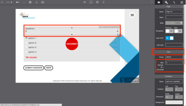 Nantinya apabila user telah melebihi batas maksimum, user dapat mengetahui jawaban yang benar apabila kita mengaktifkan fitur correction message. Berikut adalah cara menentukan batas maksimum jawaban salah pada fitur kuis di BITS: