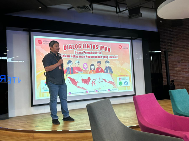 The morning session began with an opening remark from Dr. Frederikus Fios, S.Fil., M.Th., CBDC Manager and The Representative from Kemenpora. Followed by a dialogue titled “The Future of Interfaith Youth: Are We Inclusive?“. The conversation was moderated by a moderator and featured four speakers representing Beneran Indonesia, IPNU, Buddha NSI, and Binus University.