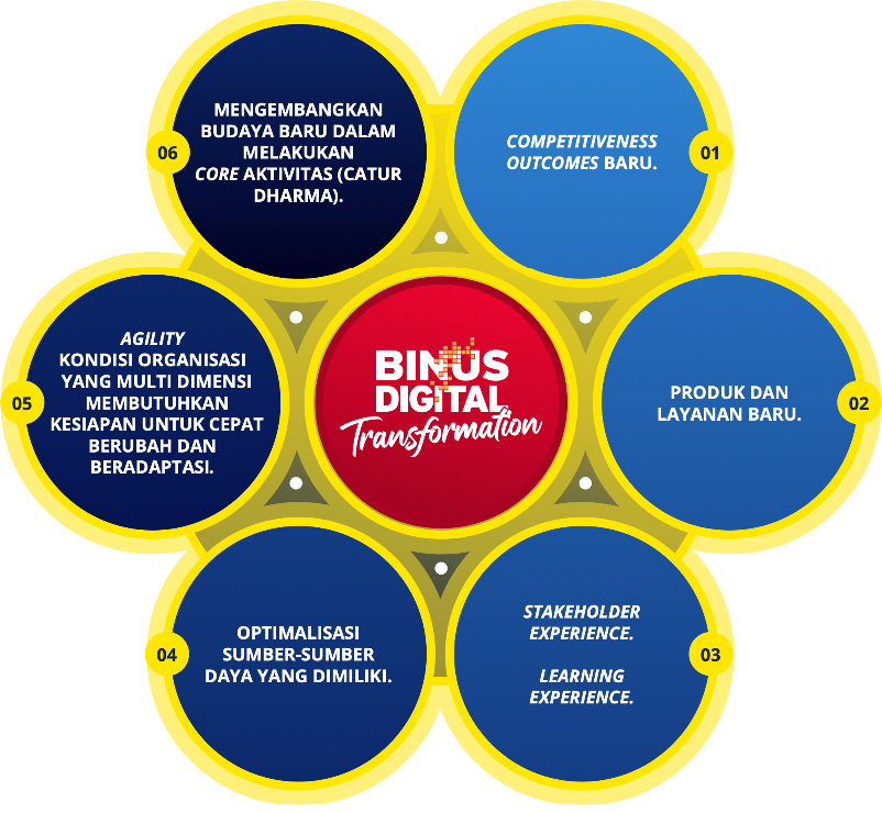 BINUS Support merupakan salah satu penggerak transformasi digital dengan menghadirkan layanan terpadu dan standar yang konsisten di seluruh kampus. Inisiatif ini diwujudkan melalui koordinasi lintas unit, pengisian konten microsite, kajian strategis, serta benchmarking ke Halo BCA, yang membangun budaya self-service modern. Dengan dukungan para pimpinan, khususnya direktur kampus, mahasiswa, dosen, dan karyawan diarahkan untuk menginternalisasi semangat “setiap kita adalah agen BINUS Support,” sehingga tercipta efisiensi operasional sekaligus peningkatan pengalaman layanan yang selaras dengan Enam Tujuan Transformasi Digital BINUS.