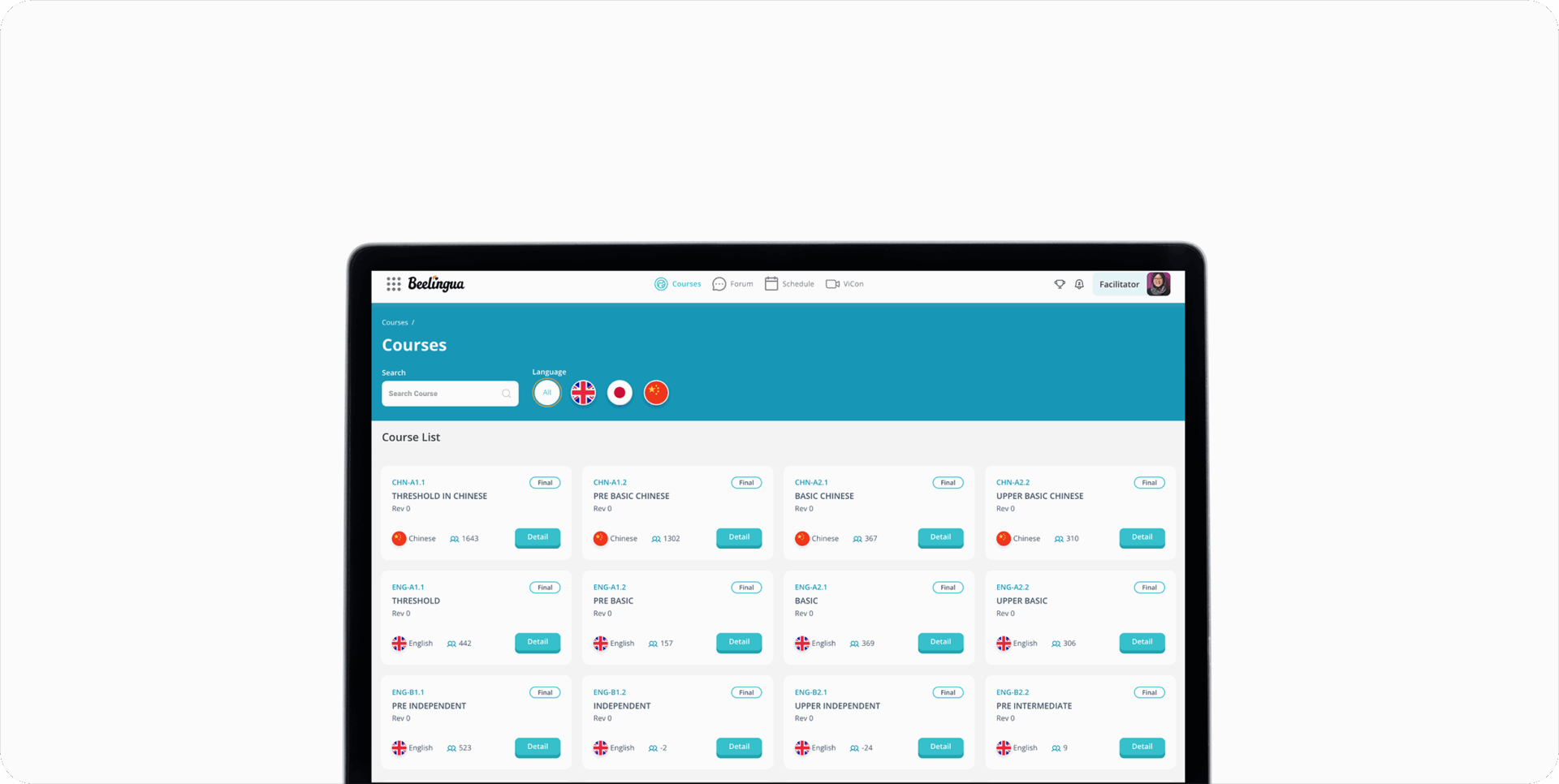 Kursus modular dengan sertifikat berstandar internasional CEFR.