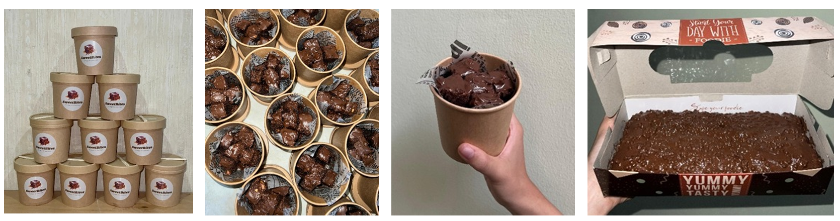 Produk ini hadir dalam dua pilihan: Brownies Box berukuran 22×10 cm yang ideal untuk dinikmati bersama keluarga atau teman, serta Brownies Cup berisi potongan kecil yang praktis untuk dibawa dan dinikmati di mana saja. SweetBites juga memiliki dua varian rasa andalan: