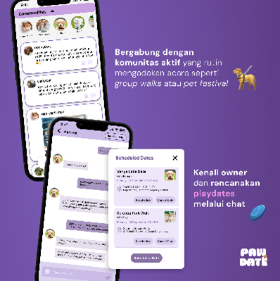 Ternyata, semakin kami menggali, semakin banyak orang yang merasa kesulitan menemukan pasangan untuk anjing mereka, atau bahkan teman bermain untuk anjing peliharaan mereka. Dari situ, ide untuk PawDate mulai muncul: sebuah aplikasi yang menghubungkan pemilik anjing, memudahkan mereka untuk menemukan teman bermain atau pasangan untuk anjing mereka, serta menyediakan berbagai acara sosial yang menyatukan komunitas pemilik anjing