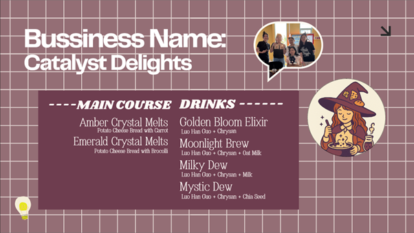 - Meningkatkan Nutrisi Sayuran: Menghadirkan makanan ringan (CATALYST BITES) yang menyamarkan rasa/tekstur sayuran, sehingga mudah dikonsumsi dan bernutrisi tinggi.