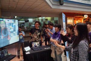 Setelah para peserta mempresentasi karya mereka, Bu Reina selaku Campus Director BINUS @Kemanggisan datang ke Atrium Lantai 1 untuk mengunjungi setiap booth untuk mencoba langsung semua produk inovatif para BINUSIAN.