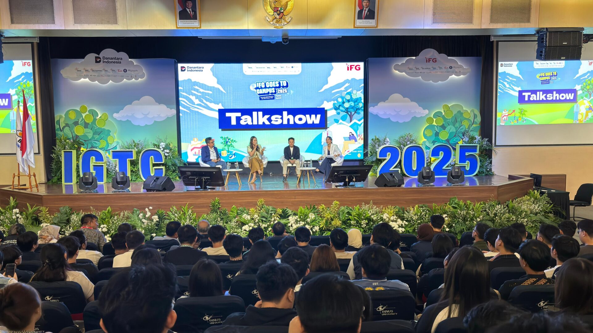 Dengan Mima Irama sebagai MC, acara talk show IGTC mengundang tiga tamu peserta yaitu Ibrahim Rohman SEVP IFG Process, Theo Derick sebagai entrepreneur dan investor serta Chisty Maryani sebagai Head of Investment Specialist Bahana Sekuritas, alumni Binusian 2026.