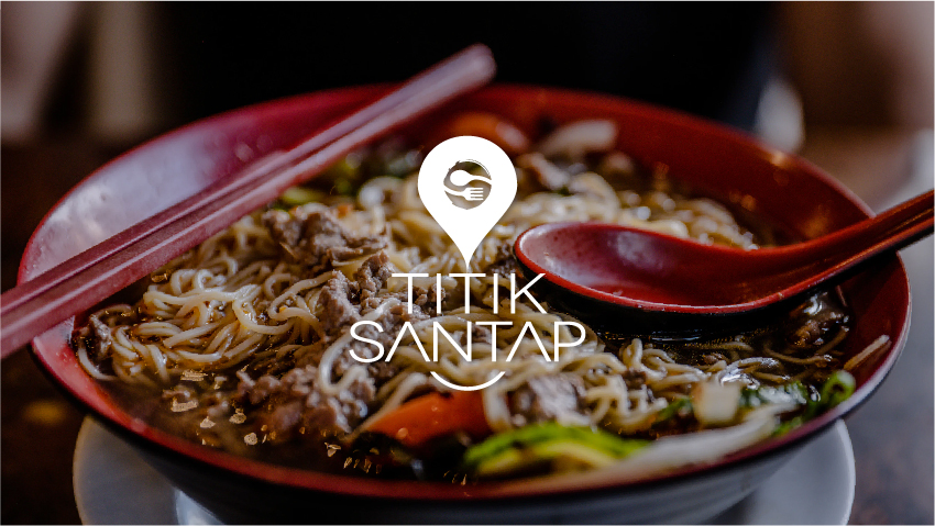 Rancangan logo ini tervisualisasi dari sebuah ikon lokasi. Bagian dalamnya terdapat huruf ‘S’ dengan sapuan ekspresif yang terbentuk dari lingkaran putih dan komposisi sendok garpu sebagai simbol tempat makan. Bentuk-bentuk tersebut mewakili kata Titik Santap.