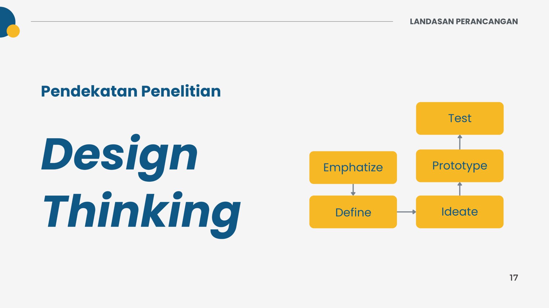 Design thinking is a non-linear ideology and process that solves complex problems in a user-centric way. Design thinking serves as a method of understanding users, examining assumptions, redefining problems, and creating innovative solutions for prototyping and testing. There are five stages in design thinking,