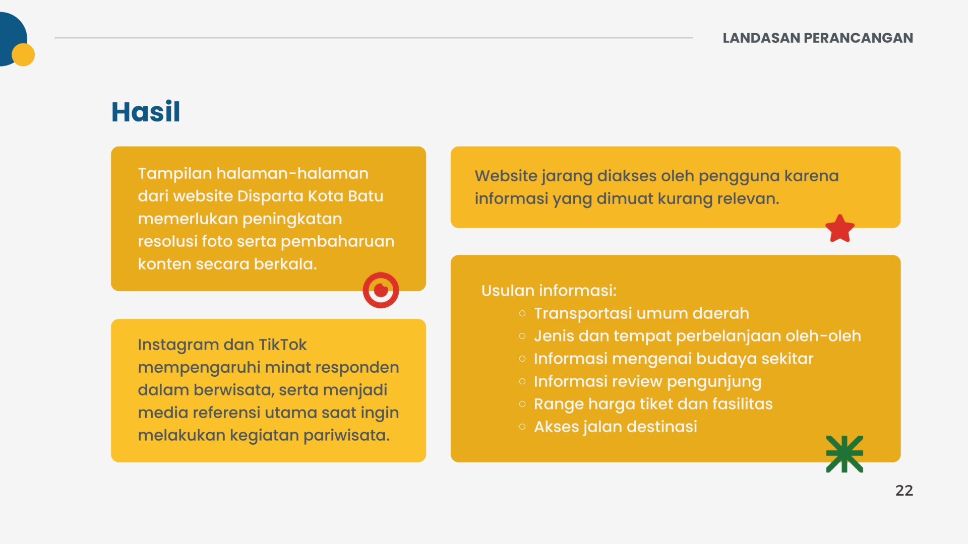 The results from the first topic showed that most respondents felt that the user interface of the Batu City Tourism Department website still needed improvements in quality and updating on some pages. The information needs to be improved, along with the layout and content of the website. Respondents struggled to access the site because of the lack of resolution of the photos loaded and the content that was not updated periodically.