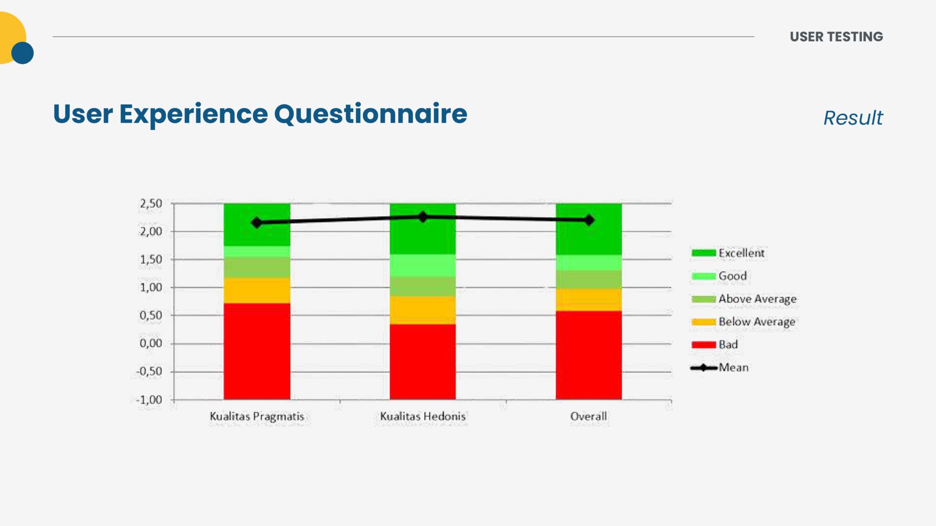 - Test: a stage with a real audience. This phase contains feedback from users about the design. The result of this phase will be brainstorming and new ideas for the perfection of the product. Testing for this study was done using the User Experience Questionnaire (UEQ) and User Interview methods