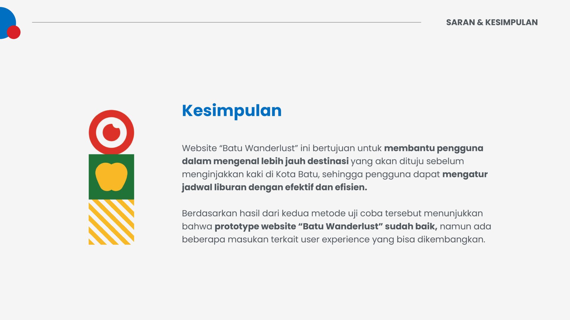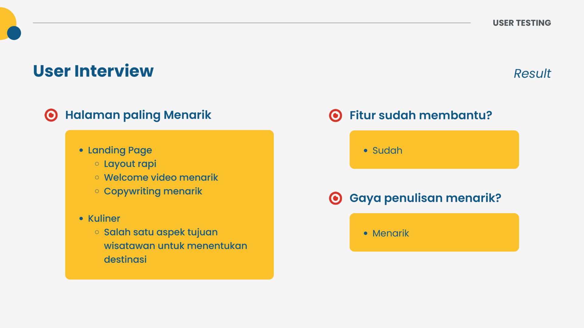 Results from the third topic show the role of respondents in providing innovation to this design. Respondents suggested that there is some additional information on the website, such as public transportation in the area, the type and location by-by, and information about the surrounding culture. Respondents also wanted some details of the destination information, like visitors’ reviews, entry price range, facilities, and road access to the destination. The results also showed the level of satisfaction of respondents when this study added the reaction on review and point-of-view features that link respondents to top social media, namely Instagram and TikTok, for more accurate information than previous visitors.