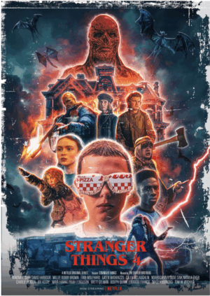 1) Retro and Nostalgia – Vintage-inspired posters (Stranger Things, Once Upon a Time