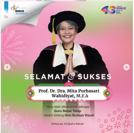 Selamat & Sukses untuk Prof. Dr. Dra. Mita Purbasari Wahidiyat, M.F.A. Sebagai Guru Besar Tetap Bidang Ilmu Budaya Visual | Professor BINUS