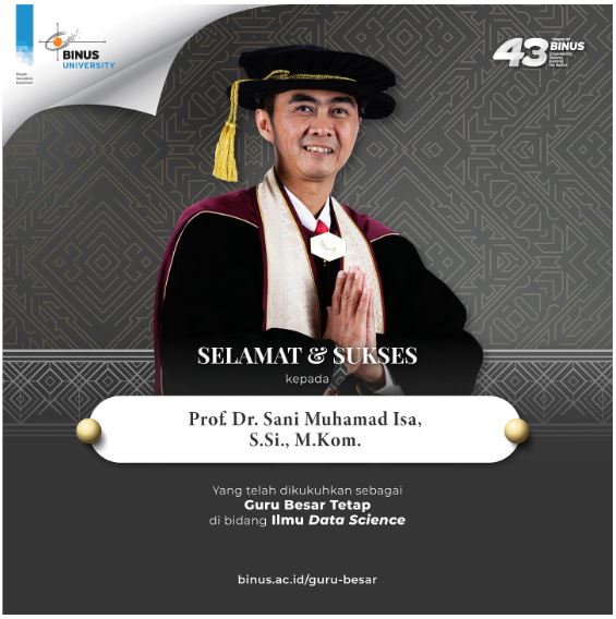 Selamat & Sukses untuk Prof. Dr. Sani Muhamad Isa, S.Si., M.Kom. sebagai Guru Besar Tetap di Bidang Data Science | Professor BINUS