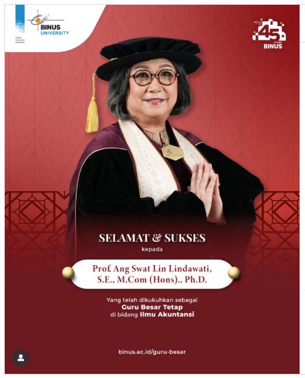 Selamat & Sukses untuk Prof. Ang Swat Lin Lindawati, S.E., M.Com (Hons)., Ph.D. sebagai Guru Besar Tetap bidang Ilmu Akuntansi | Professor BINUS
