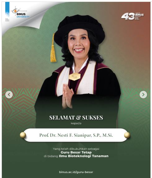 Selamat & Sukses untuk Prof. Dr. Nesti F. Sianipar, S.P., M.Si. sebagai Guru Besar Tetap dalam bidang Keahlian Bioteknologi Tanaman | Professor BINUS