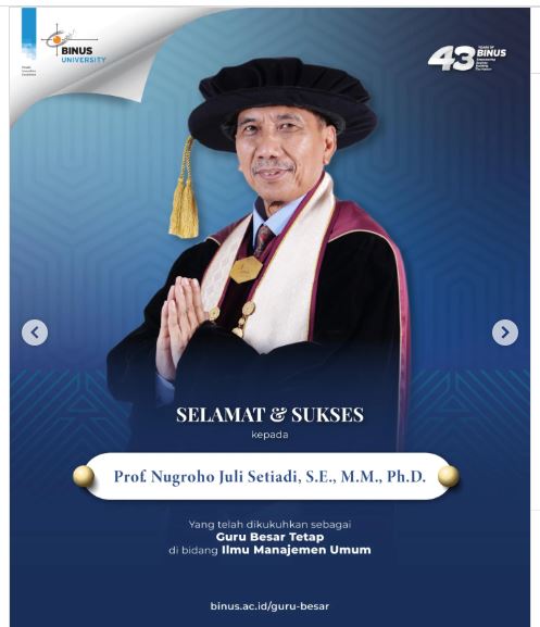 Selamat & Sukses untuk Prof. Nugroho Juli Setiadi, S.E., M.M., Ph.D. sebagai Guru Besar Tetap di bidang keahlian Manajemen Umum | Professor BINUS
