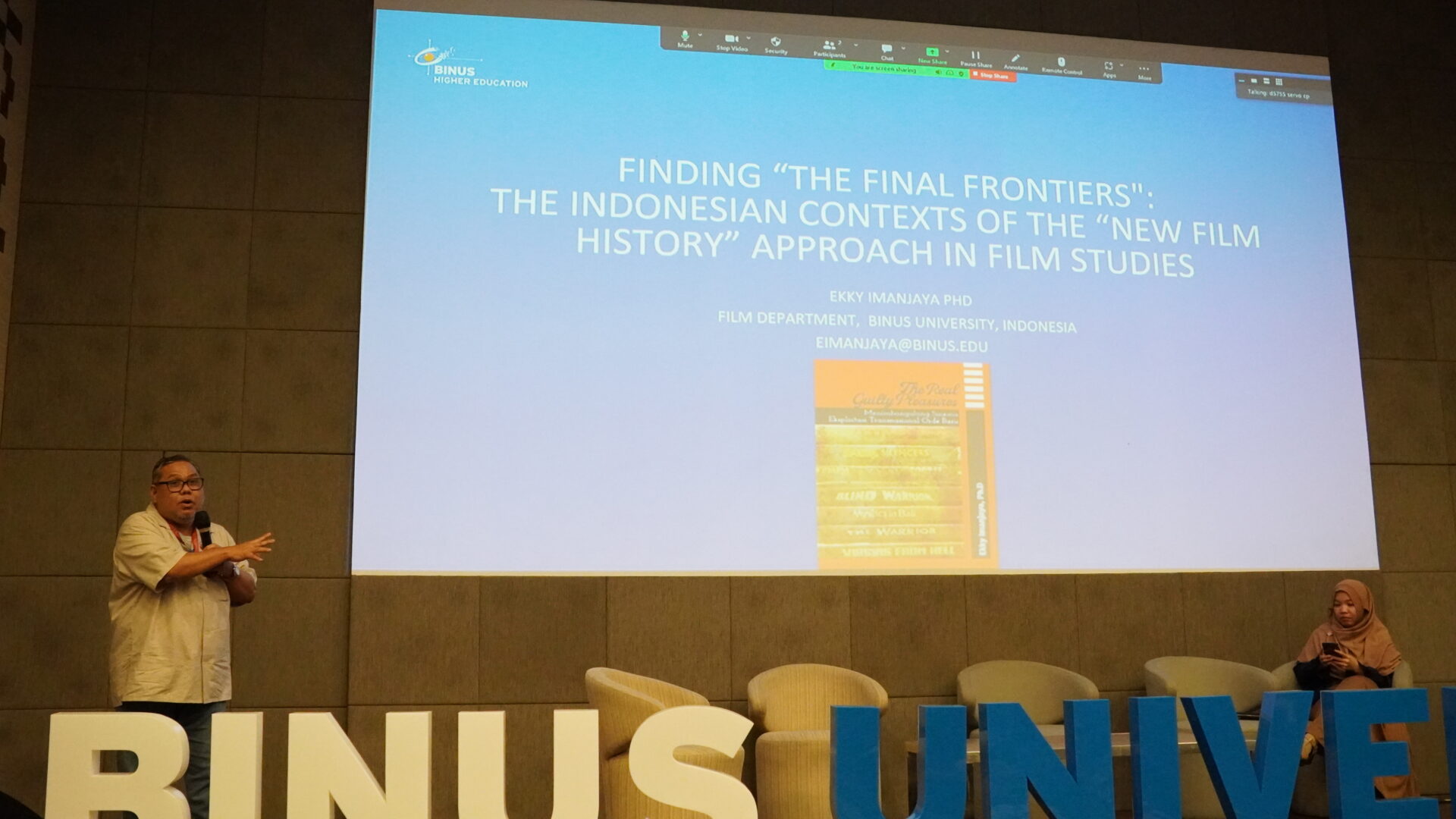 BINUS Publishing menggelar bedah buku bersama penulis yaitu Ekky Imanjaya, Ph.D., yang berjudul “The Real Guilty Pleasures: Menimbangulang Sinema Eksploitasi Transnasional Orde Baru” yang di moderatori oleh Nayla Majestya, S.Sn., M.Sc. selaku dosen Film BINUS University dan dihadiri oleh seratus orang lebih peserta.