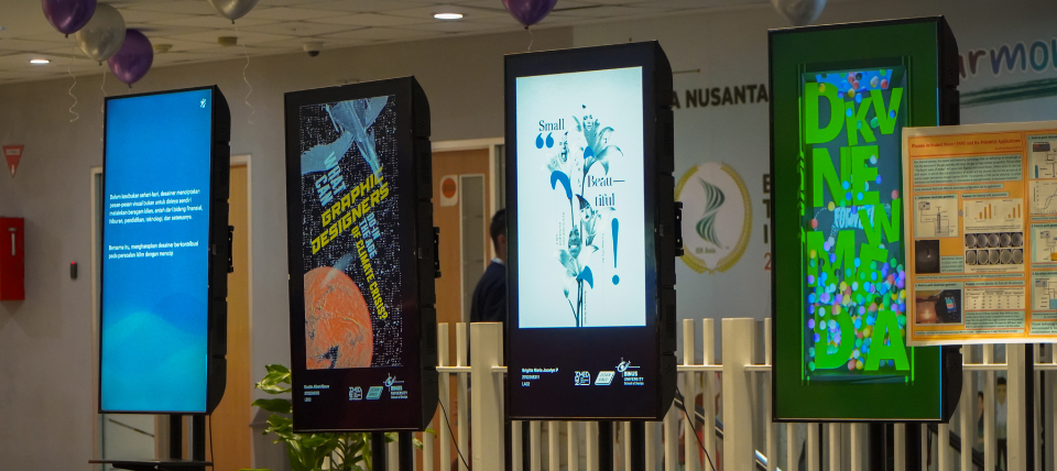 Lastly, the forum brought Aliftsa and Audrey, as well as faculty and staff, to display their impactful work that demonstrates the institution’s commitment to sustainable development. Their artworks demonstrate that, with exploration and creative intent, designers can achieve compelling aesthetics while maintaining eco-conscious principles. Such efforts may help redefine how sustainability is perceived in the digital design landscape and hopefully inspire more creative creators to follow in their footsteps, together with BINUS University, in fostering and empowering society.