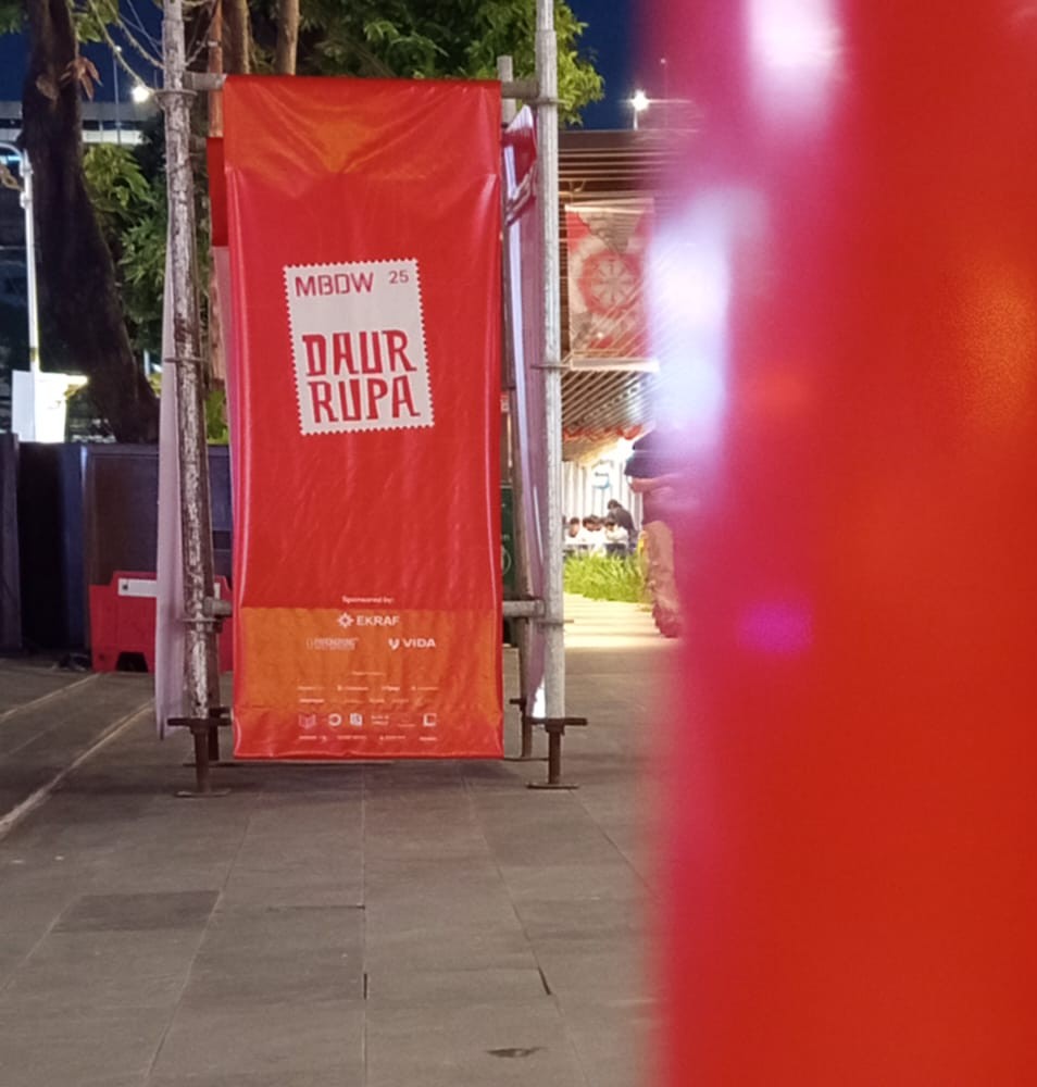 Jurusan Desain Interior BINUS University Jakarta terpilih dalam pameran terkurasi MBDW 2025. Bersama dengan karya-karya terkurasi lainnya, Desain Interior BINUS University menampilkan hasil karya di lingkungan akademik Desain Interior BINUS University Jakarta berupa fragmen-fragmen, potongan eksplorasi material yang mengedepankan perhatian terhadap lingkungan. Di antara karya tersebut terdapat karya mahasiswa “Corn Husk” karya dari Tiffany Olivia Wijady (B26) yang mengeksplorasi potensi serat jagung sebagai bahan pelapis berwarna. Ada pula karya Keiko Amelia dengan “Rona Terrazzo” yang memadukan keindahan limbah cangkang kerang dengan kekuatan bahan dasar semen. Juga tak kalah menarik, karya dari Amadea N. Kubijanto, dengan keterampilan tangan mengolah rotan dipadukan dengan benang-benang katun menghasilkan kreasi anyaman yang memiliki konsep tactility dan diadaptasi pada konsep tugas akhirnya berupa fasilitas rehabilitasi anakpenderita kanker. Selain itu terdapat beberapa hasil eksperimen karya kolaborasi dosen Desain Interior dan Desain Komunikasi Visual BINUS University Jakarta juga turut ditampilkan, karya kolaborasi dosen Desain Interior dan Desain Komunikasi Visual BINUS University Jakarta (Siti Chadijah, Reno Fanthi, Patricia Adele, Ade Aryani Sari Fajarwati, dan Agnes Paulina Gunawan). Di antara karya dosen tersebut seperti “Coffeegg”, yang mengolah limbah ampas kopi dan cangkang telur yang dihasilkan dari gerai-gerai makanan di sekitar kampus Kemanggisan BINUS University Jakarta. Terakhir, karya “Cable Waste” juga menghiasi dengan pengolahan limbah elektronik yang dipadukan dengan penggayaan khas warna-warni betawi yang meriah. langkah kecil ini diharapkan dapat memantik semangat masyarakat luas untuk terus berinovasi, mencari penawar melalui material laternatif dalam menghadapi tantangan krisis multi-lapisan di masa depan.