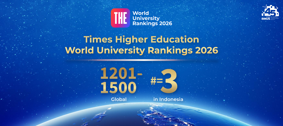 Jakarta, 9 October – BINUS University sustains its international reputation in the 2026 Times Higher Education (THE) World University Rankings, ranking within the 1201-1500 band globally and holding the third position among Indonesia’s leading universities.