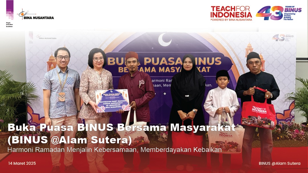 BINUS University kembali menggelar acara Buka Puasa BINUS bersama Masyarakat. Tema yang diusung pada tahun ini ialah “Harmoni Ramadan: Menjalin Kebersamaan, Memberdayakan Kebaikan”, yang diselenggarakan pada tanggal 14 Maret 2025 di kampus BINUS @Alam Sutera.