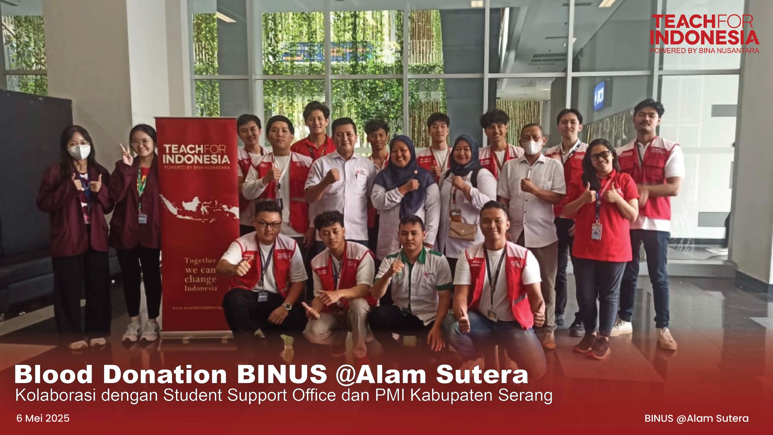 tanggal 6 Mei 2025, BINUS @Alam Sutera menggelar kegiatan donor darah di kampus sebagai bagian dari program rutin yang diselenggarakan setiap tiga bulan sekali. Acara ini merupakan hasil kolaborasi antara Teach For Indonesia, Student Support Office (SSO) BINUS @Alam Sutera dan Palang Merah Indonesia (PMI) Kabupaten Serang.