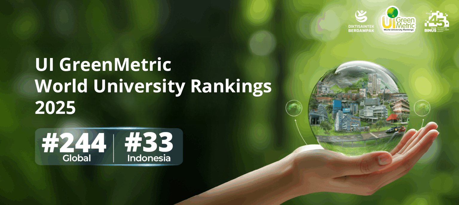 Jakarta, 5 January– The journey toward a more sustainable campus at BINUS University recorded a new milestone with the university securing 33rd place in Indonesia and 244th worldwide in the UI GreenMetric World University Rankings 2025.