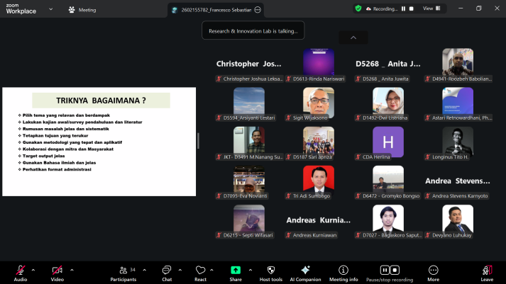 Rangkaian BEE Fund Festival 2025 telah memasuki puncaknya pada Rabu, 26 November 2025, ketika para dosen mengikuti Workshop Proposal Hibah PkM yang diselenggarakan secara hybrid melalui Zoom dan secara luring di R.700 BINUS @Kemanggisan. Sesi ini menjadi langkah strategis BINUS University dalam mendorong para Faculty Members agar semakin siap berkompetisi pada skema hibah Kemdiktisaintek. Melalui hibah tersebut, BINUS berupaya memastikan bahwa hasil penelitian para dosen dapat diwujudkan menjadi program pengabdian yang memberikan solusi nyata bagi masyarakat.