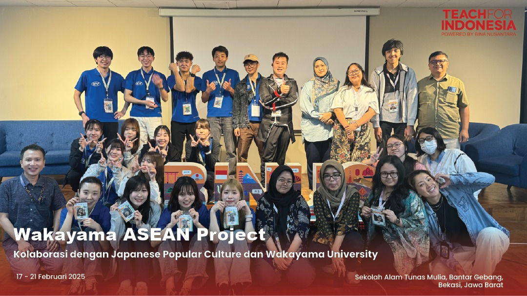 Teach For Indonesia, bersama dengan Wakayama University dan Japanese Popular Culture Program BINUS University, kembali mengadakan kegiatan Community Development melalui Wakayama ASEAN Project (WAP) yang diadakan pada tanggal 17 – 21 Februari 2024 di sekolah Alam Tunas Mulia, Bantar Gebang, Bekasi, Jawa Barat.