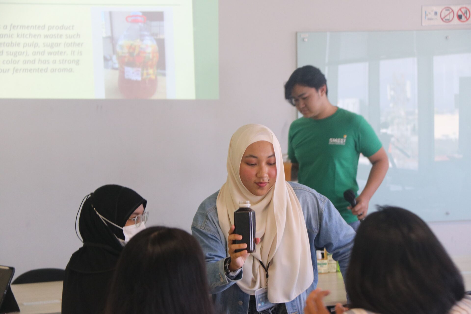 Diskusi informal juga berlangsung hangat antara peserta dan tim fasilitator dari RIG SMEEI, yang memberikan wawasan tambahan tentang berbagai aplikasi lanjutan dari Eco Enzyme dan tantangan dalam edukasi keberlanjutan di masyarakat.