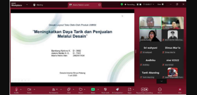 Pelatihan yang dilaksanakan secara daring ini menekankan praktik langsung dalam menata ruang toko agar lebih fungsional, estetis, dan ramah pelanggan. Para peserta diajak mengeksplorasi konsep desain sederhana namun berdampak, mulai dari penataan produk, pemilihan warna, hingga pencahayaan yang dapat menonjolkan keunikan produk mereka. Pendekatan ini tidak hanya bersifat teknis, tetapi juga humanis, mendorong UMKM untuk menciptakan ruang yang menyenangkan bagi pelanggan sekaligus merepresentasikan identitas usaha mereka.
