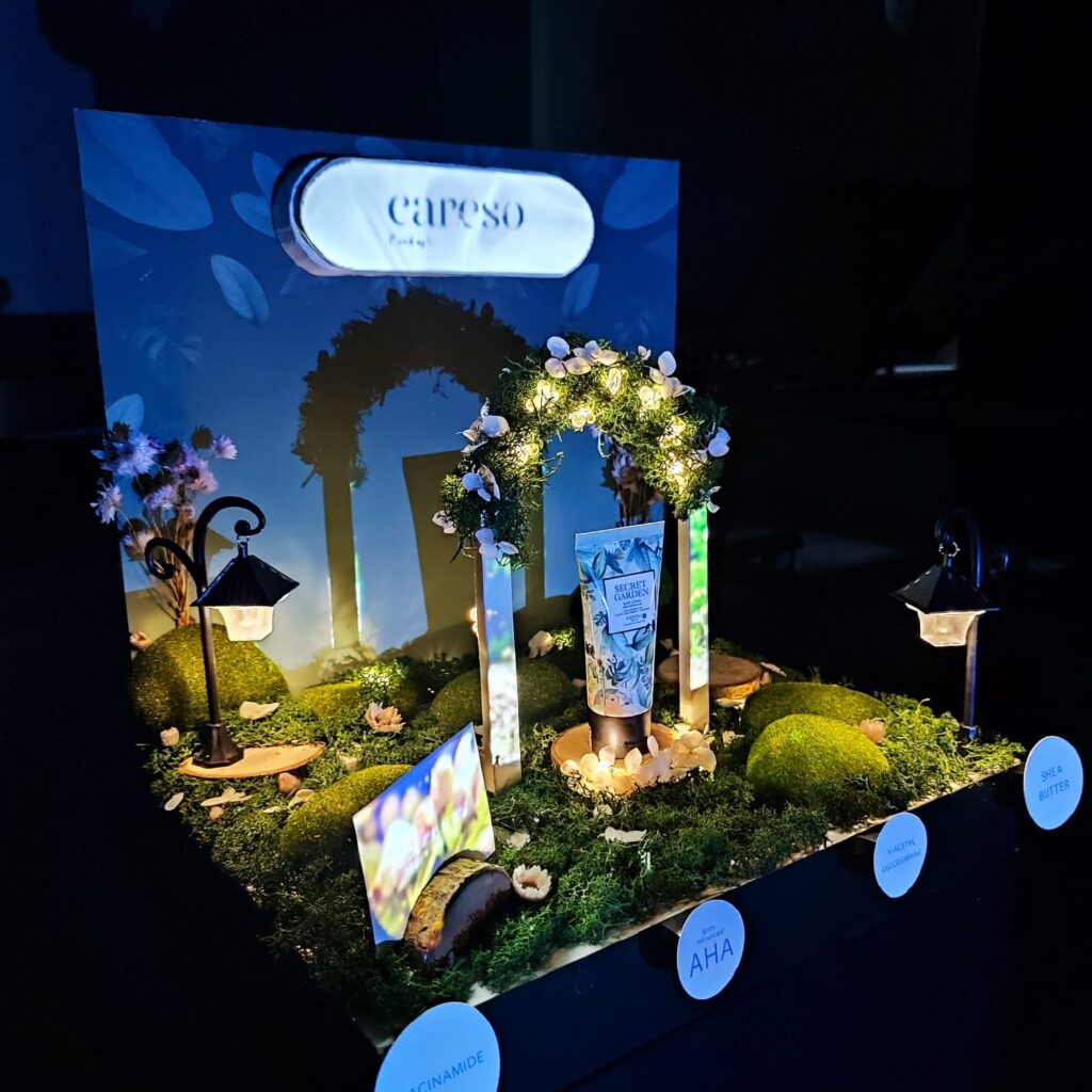 Keunikan dari mata kuliah ini adalah pendekatannya yang langsung aplikatif: dimana mahasiswa diminta memilih produk display dari brand ternama—seperti Gramedia, Make Over, instaperfect suede lip, atau brand lokal ikonik seperti careso, Ortuseight, Mayora — dan mendesain pengalaman visual berbasis projection mapping yang mampu memperkuat narasi brand tersebut.