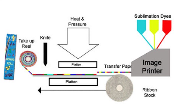 Printer dye-sublimation inkjet mencetak desain secara mirror ke kertas transfer berlapis khusus.