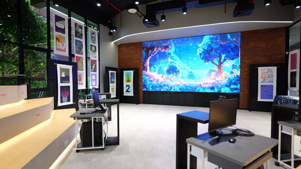 Ruangan ini berada di lantai dasar Gedung Main Campus Binus University Semarang. Gallery ini juga dilengkapi dengan area pajang karya cetak, area digital berupa TV LED, area dark room dengan empat projector dan LED Panel, Oculus dan PC untuk AR/VR area.