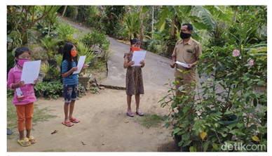 gambar 2.2 gambar Guru SD di Magelang, Hendricus Suroto mendatangi siswanya yang kesulitan sinyal untuk belajar online, Senin (20/7/2020). (Foto: Eko Susanto/detikcom)