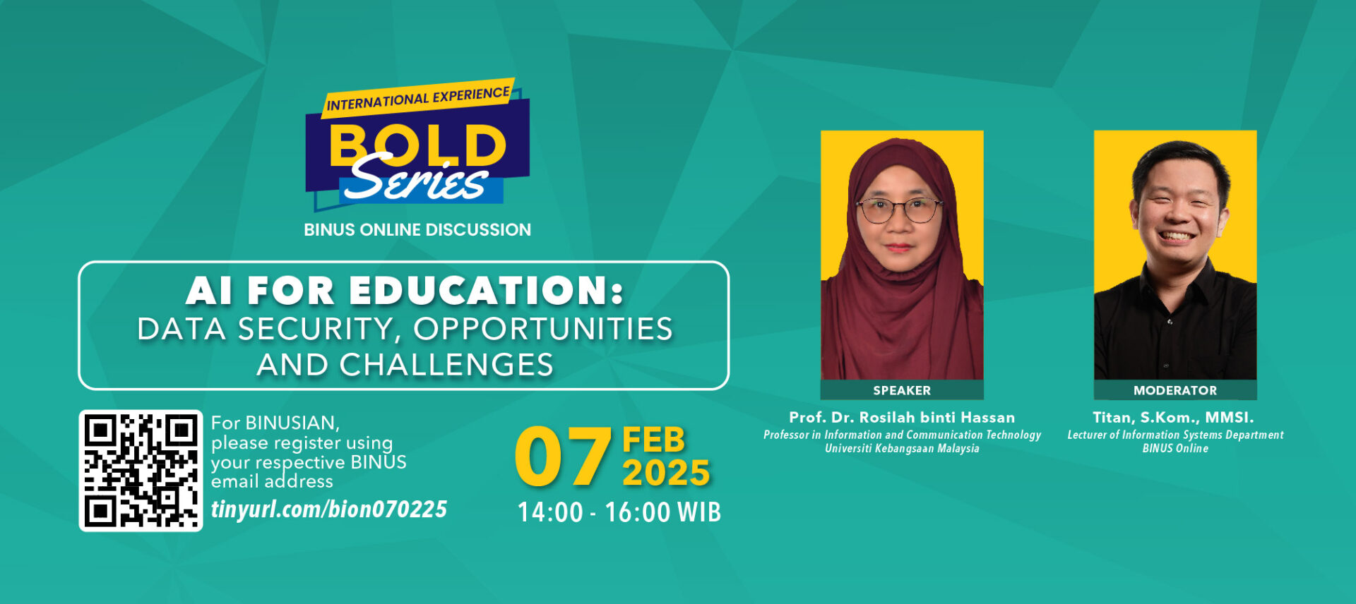HomeBOLD Series International Experience: AI for Education BOLD Series International Experience: AI for Education 30 Jan 2025 BOLD Series International Experience: AI for Education: Data Security, Opportunities and Challenges Share to your friends